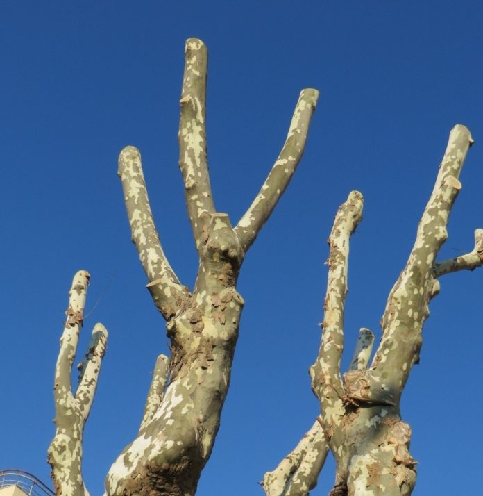 Certo, si dirà che erano malati, con quei fusti a tratti ritorti nei bozzi di quella sorta di tumore che avvinghia le piante costrette a respirare i malsani umori delle nostre città (ma nessuno si è mai occupato di curarli); certo si dirà che erano pericolosi, con qualche fusto inclinato a inseguire la luce che nella strada s’insinua di sghembo (ma nessuno, negli anni, ha mai pensato di potarli aiutandoli a raddrizzarsi); certo, e questo è sembrato forse davvero intollerabile (!?), troppa resina cadeva dalle piante sulle nostre lustre automobili. Una bella seccatura…